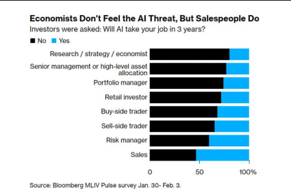 Ai가 3년내 자신의 직업을 대체할거라 생각하는가라는 질문에 대한 증권업계 종사자들의 대답입니다. 3년 뒤에는 과연 Ai가 어느정도로 성장해 있을까요?